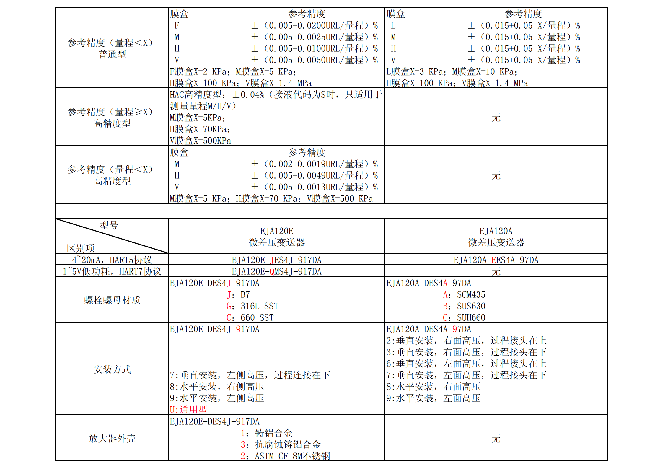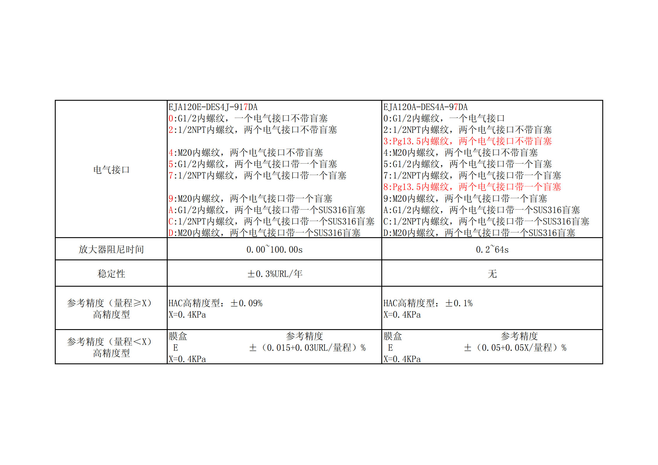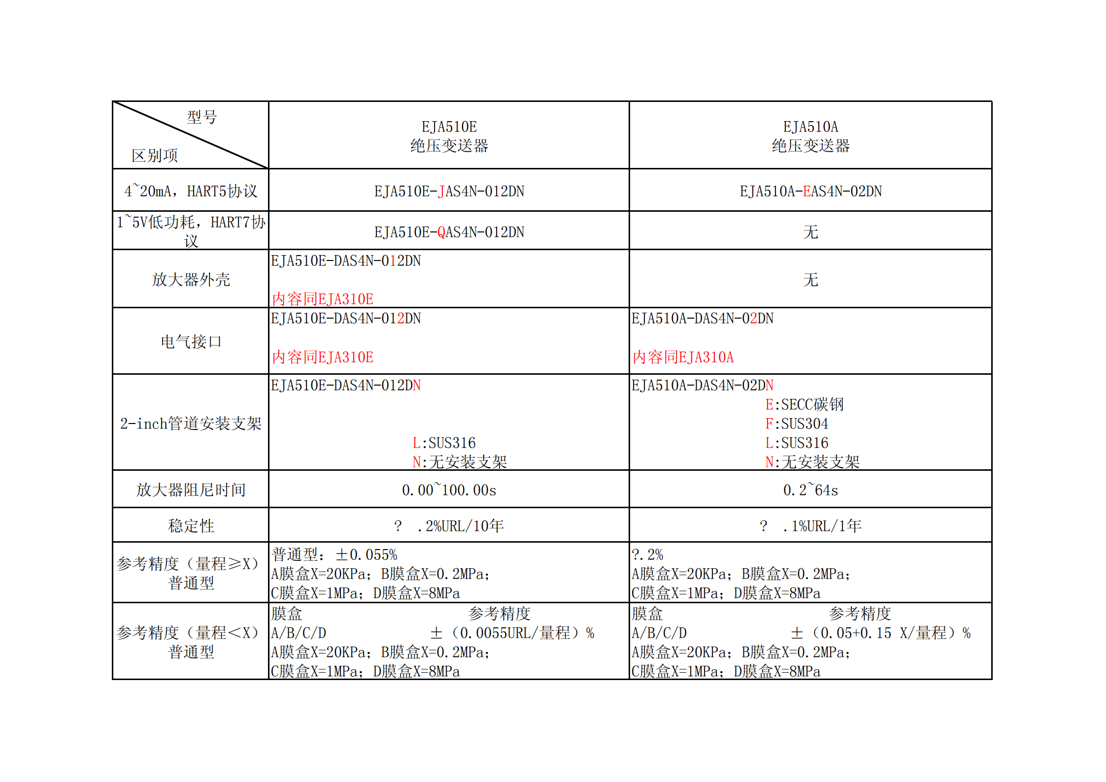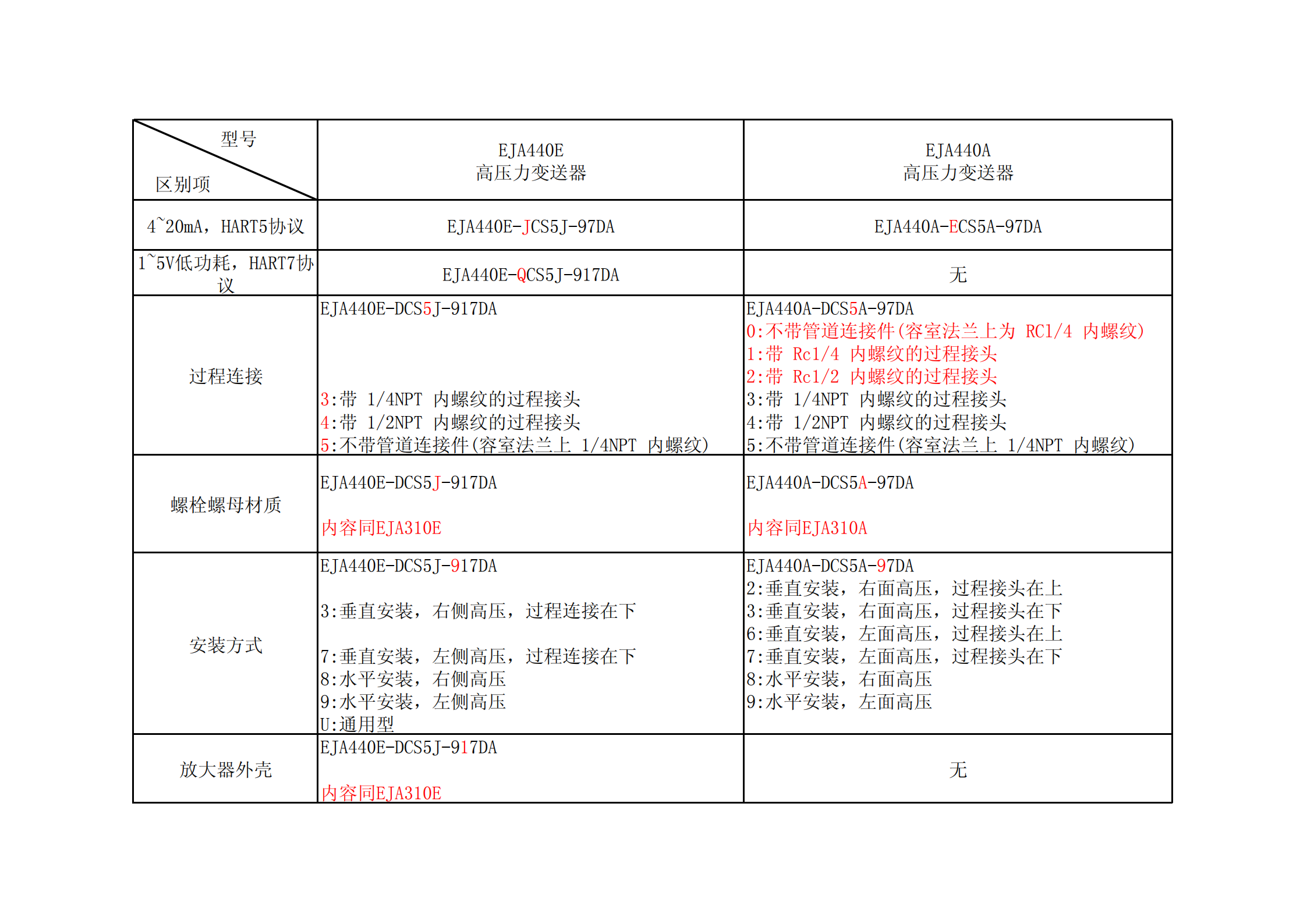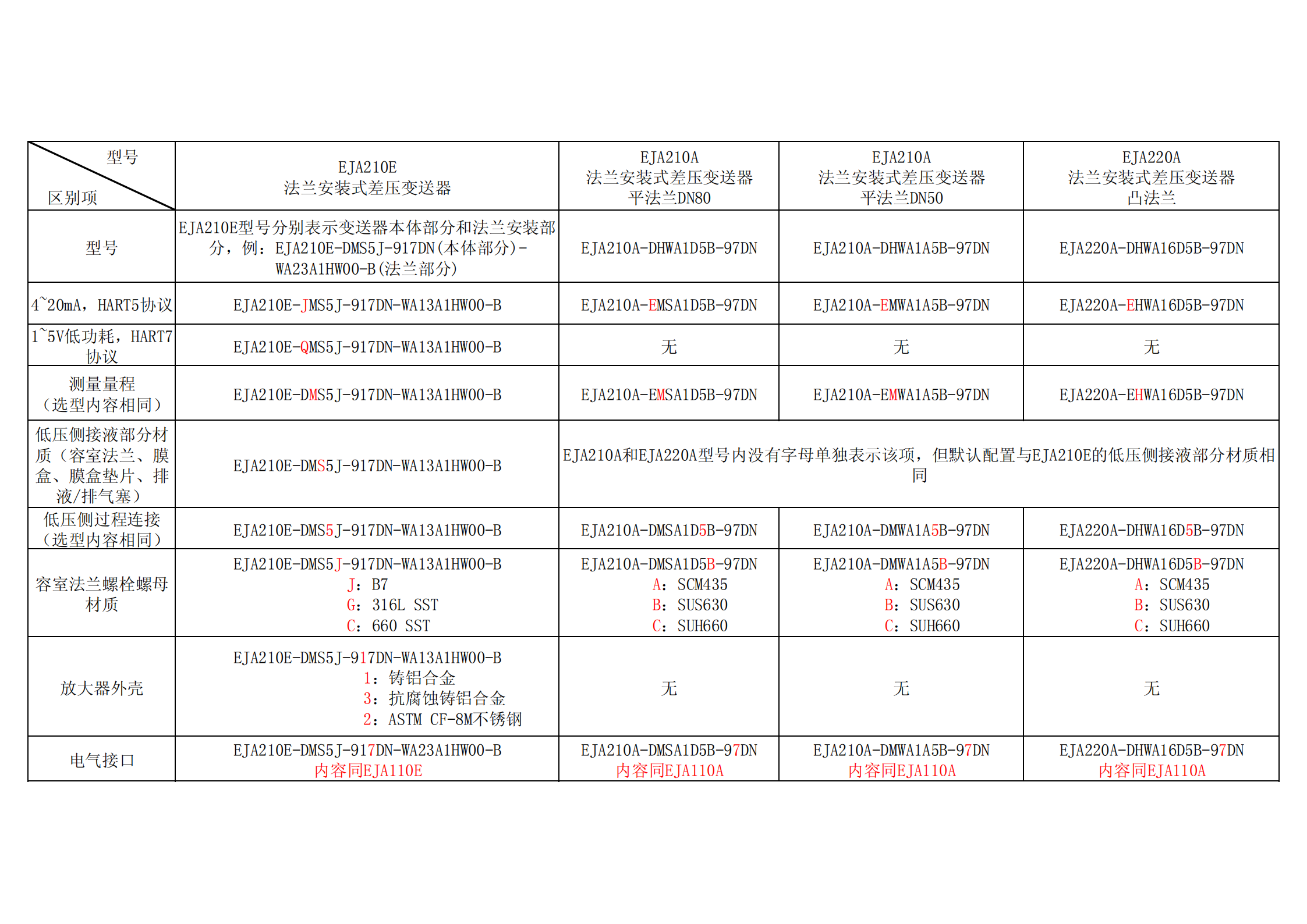 4、HART協議在選型中的代碼均由以前的E變為J |