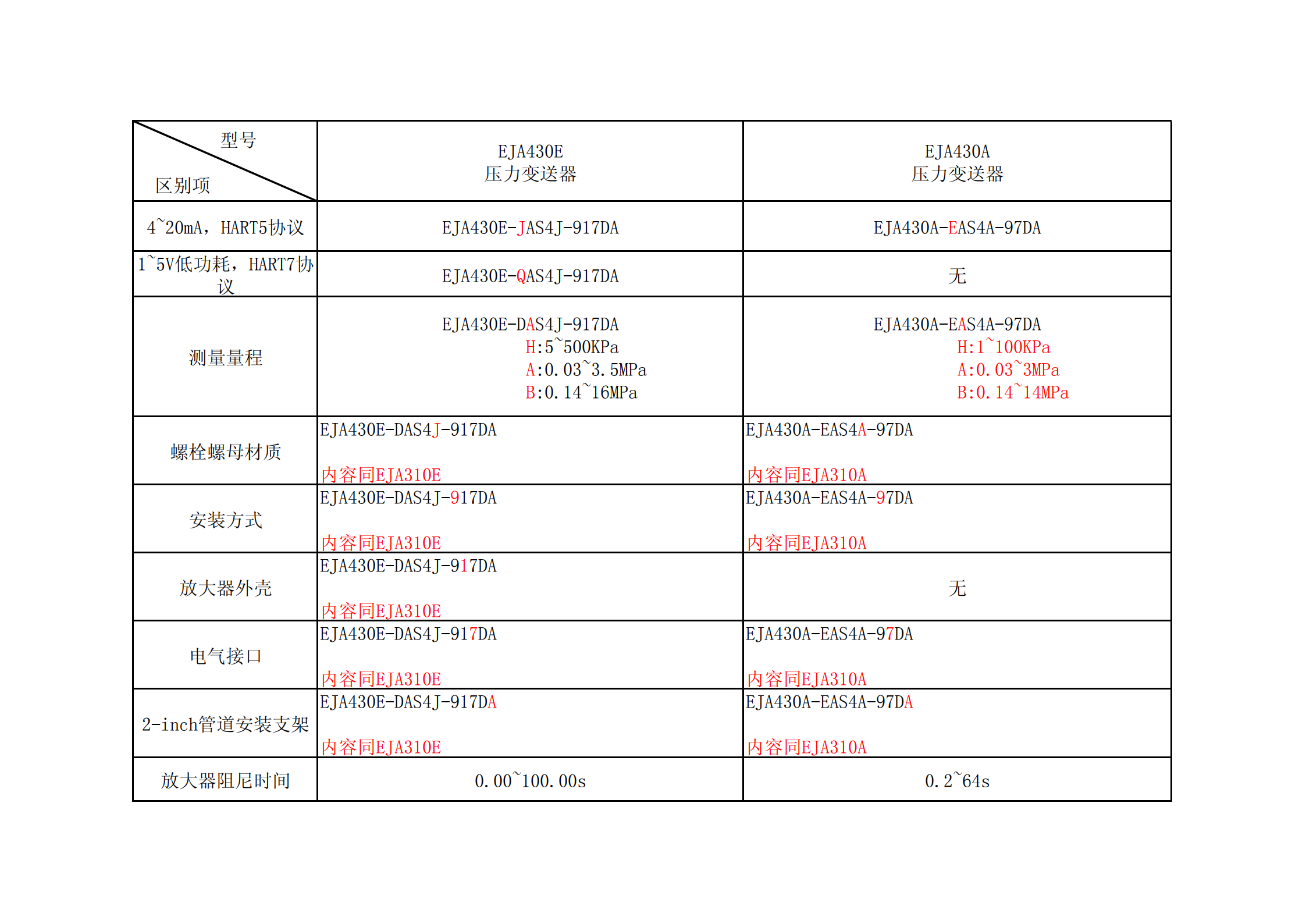 1、變送器量程有變化的型號:差壓變送器EJA110E,絕壓變送器EJA310E,壓力變送器 EJA430E,隔膜密封式壓力變送器EJA438E,微笑流量變送器EJA115E |