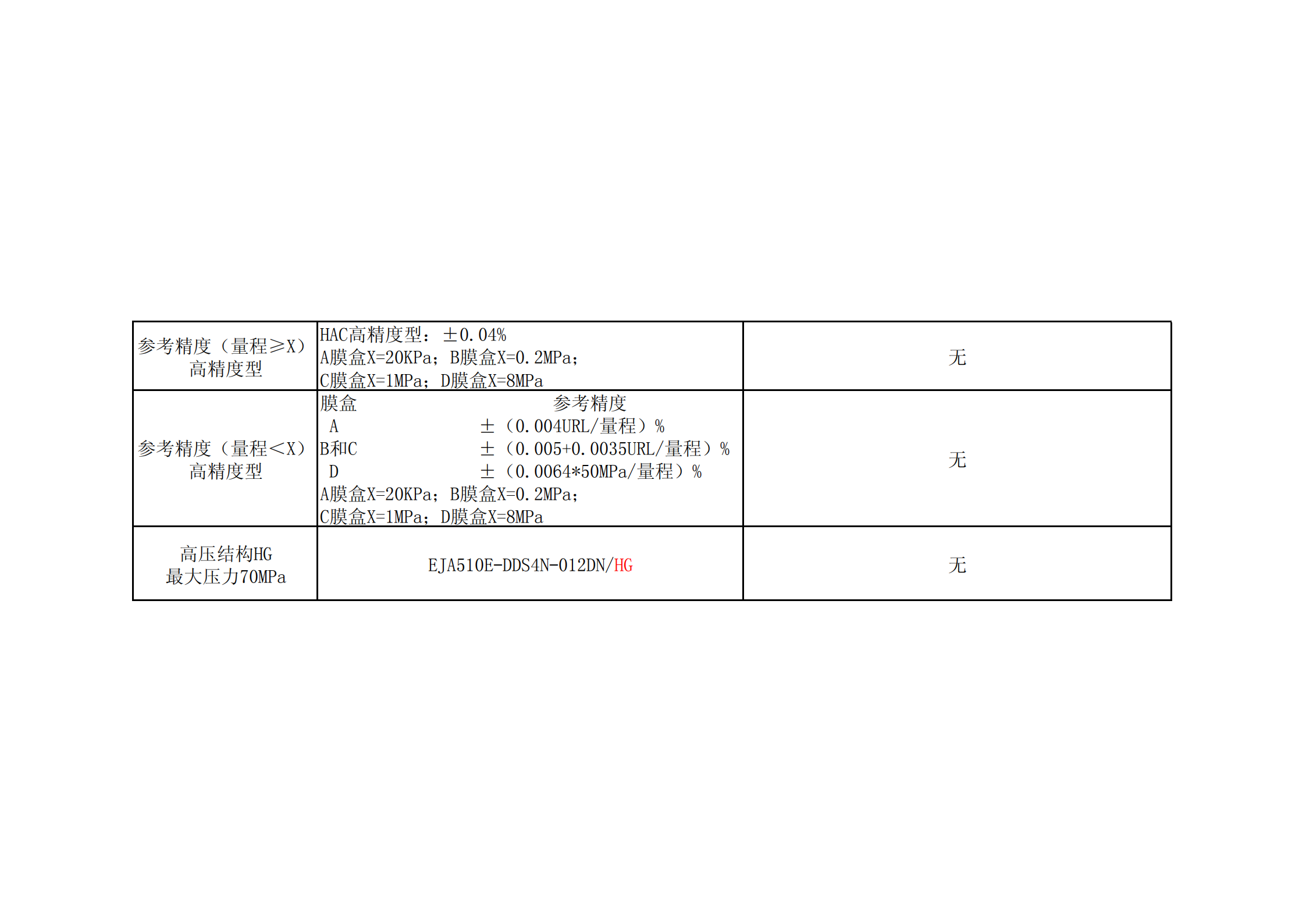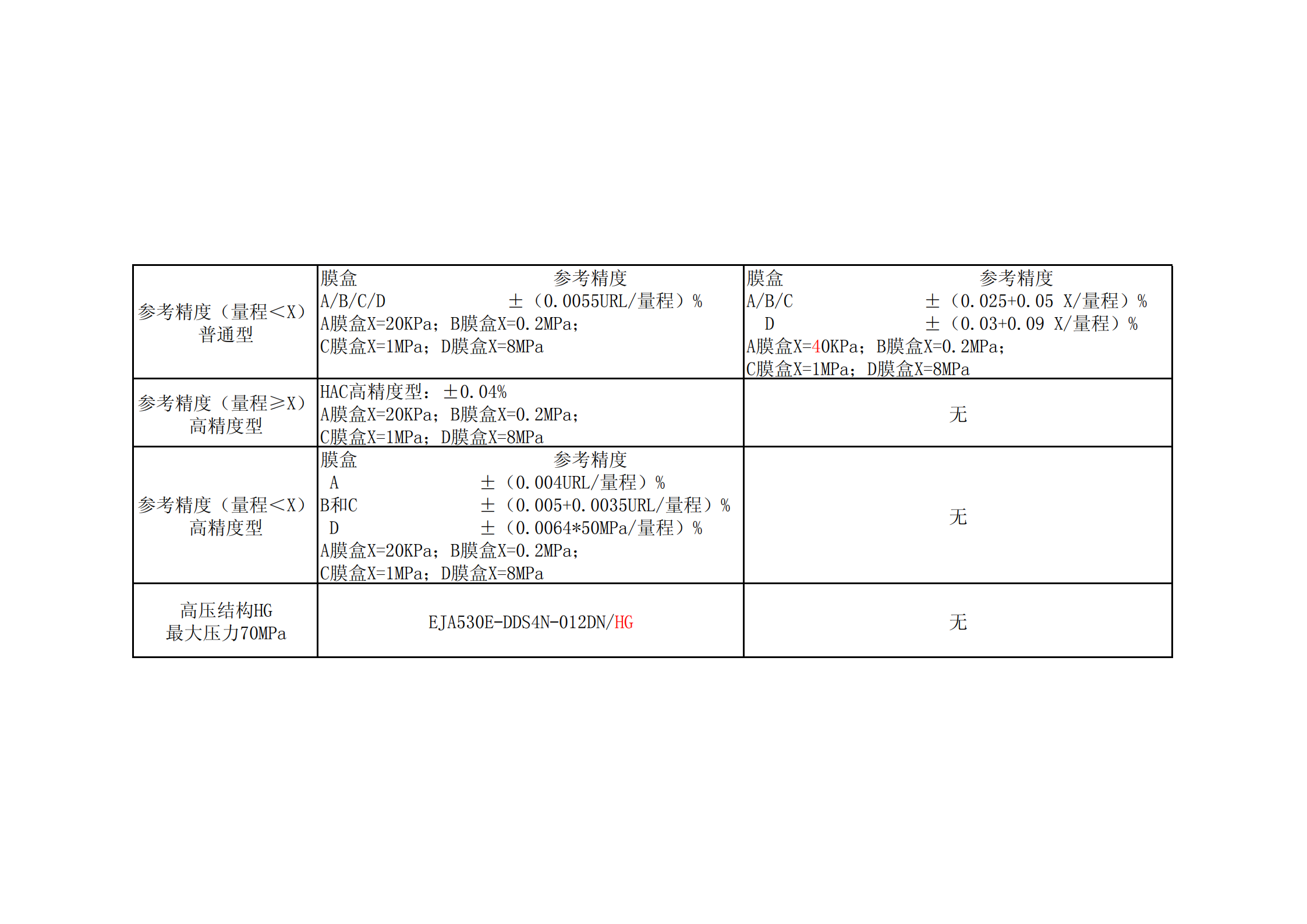 | 2、精度提高的變送器型號:差壓變送器EJA110E,絕壓變送器EJA310E,壓力變送器 EJA430E,高壓力變送器EJA440E,絕壓變送器EJA510E,壓力變送器EJA530E, |