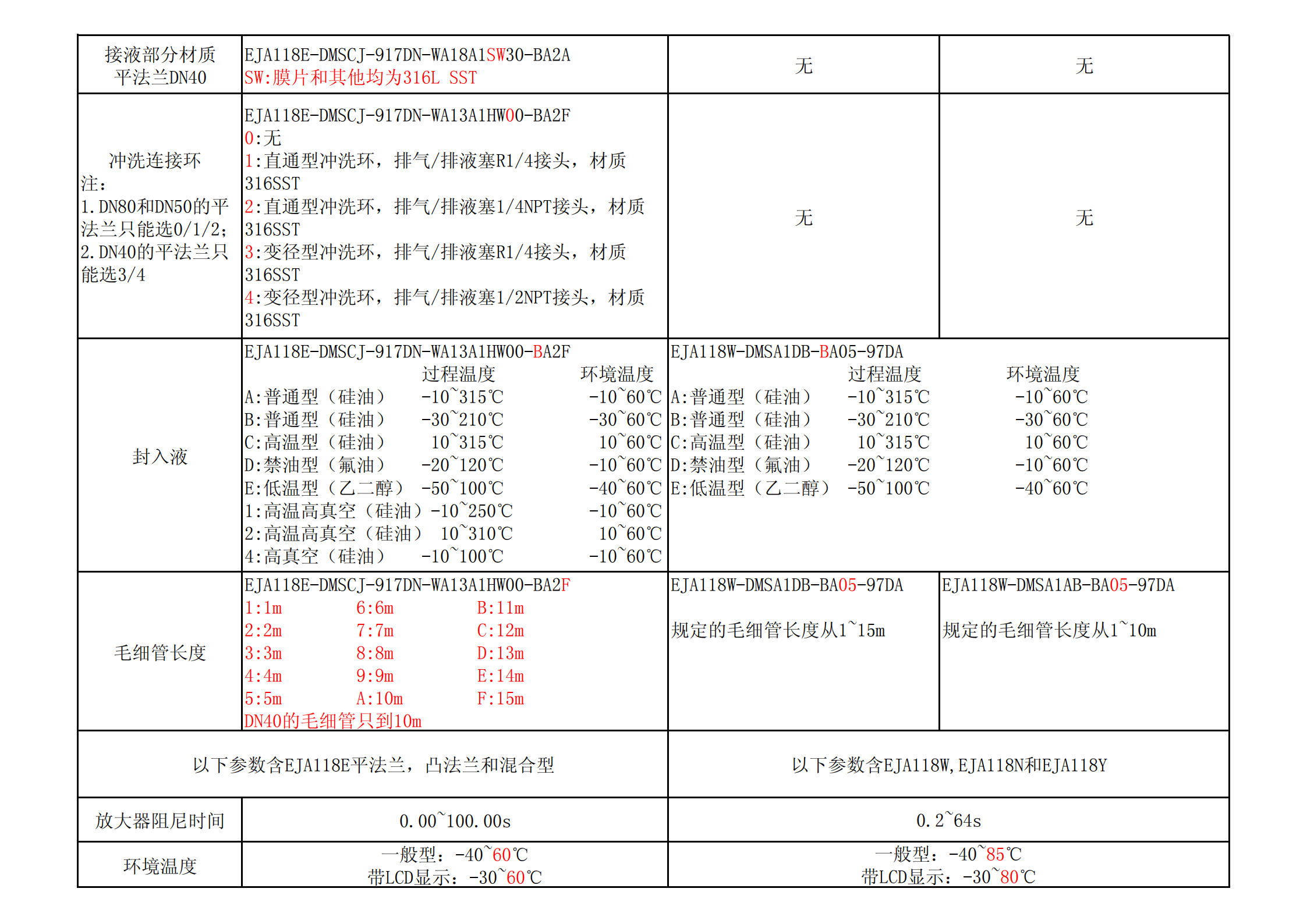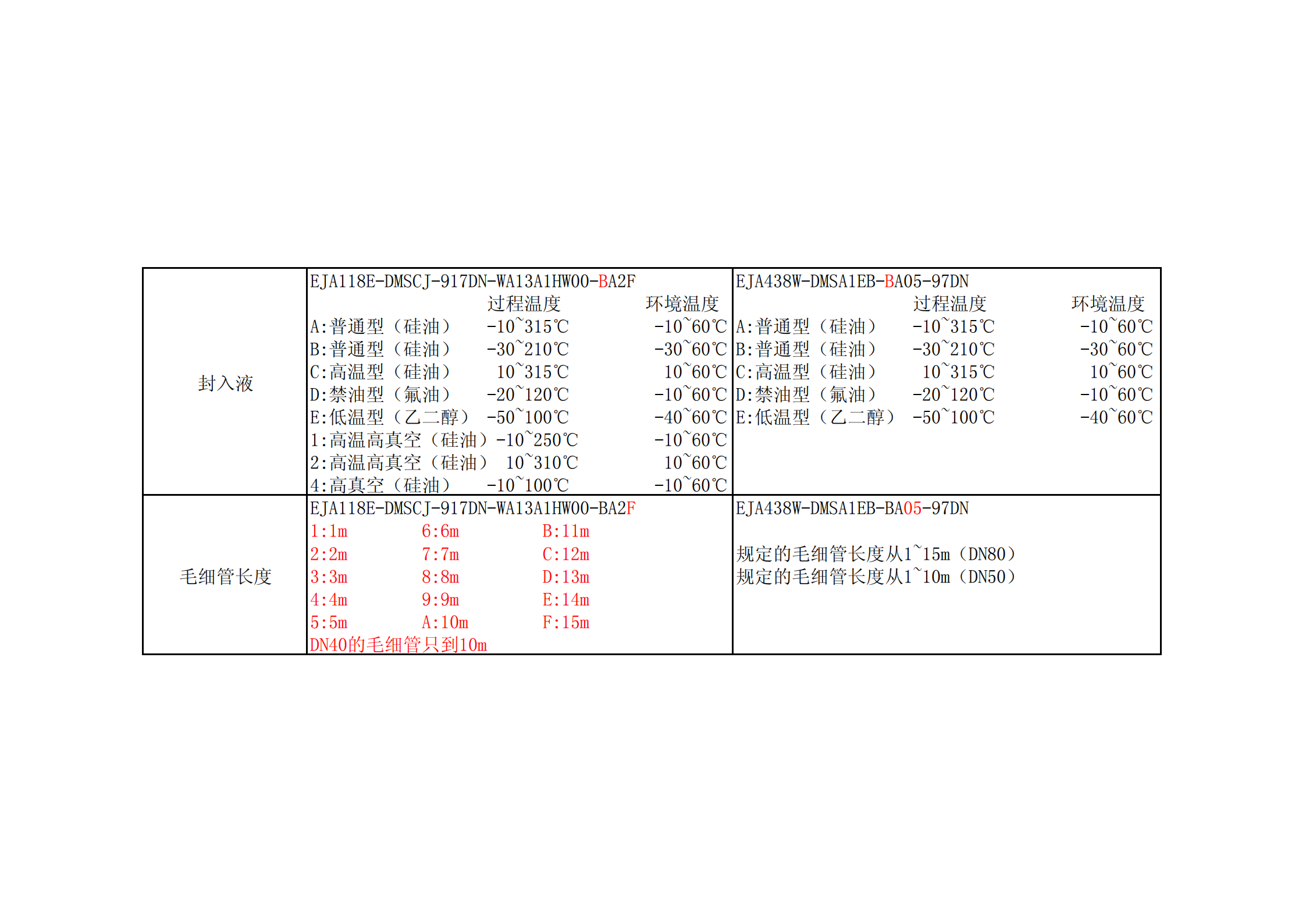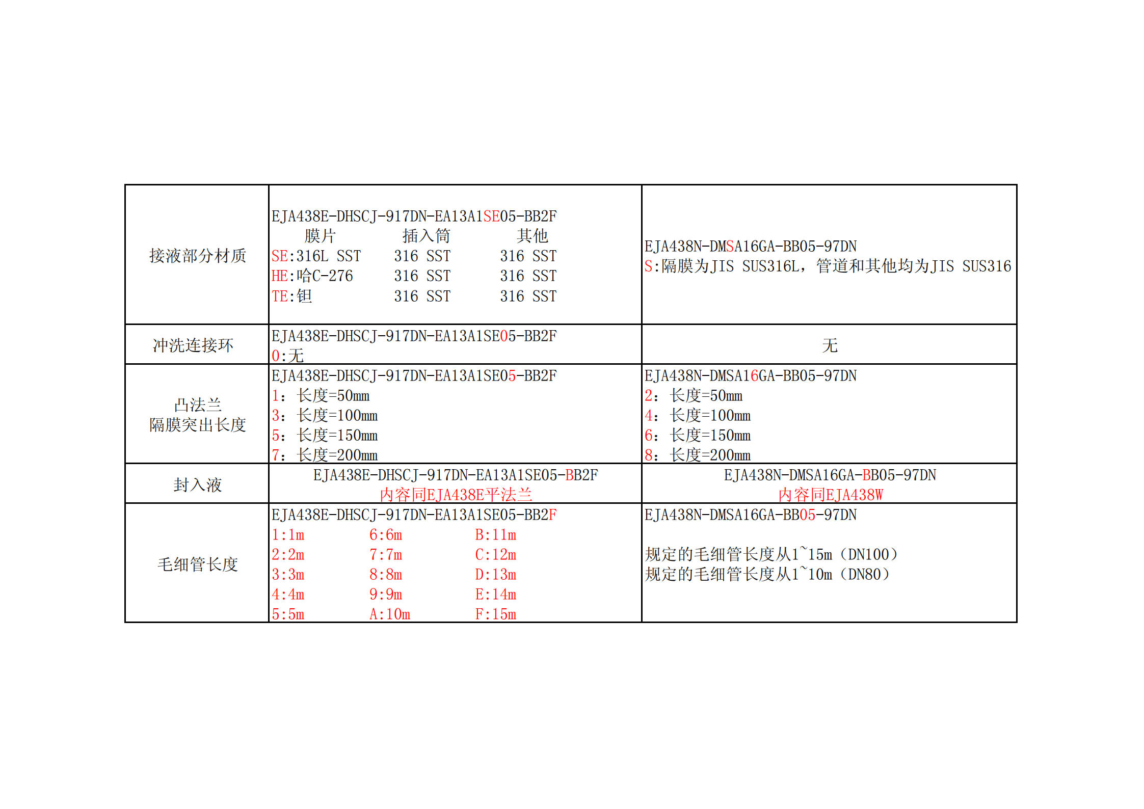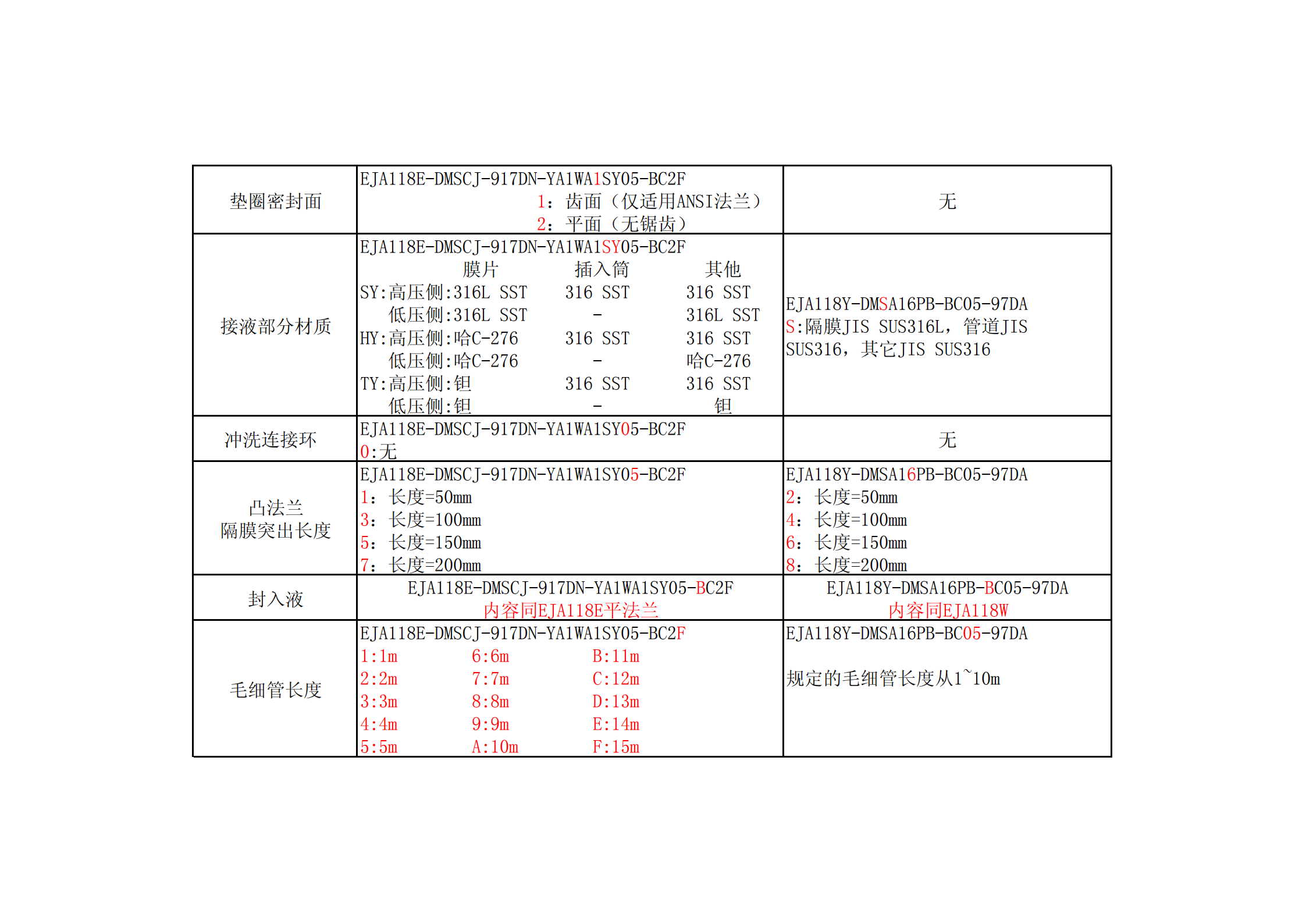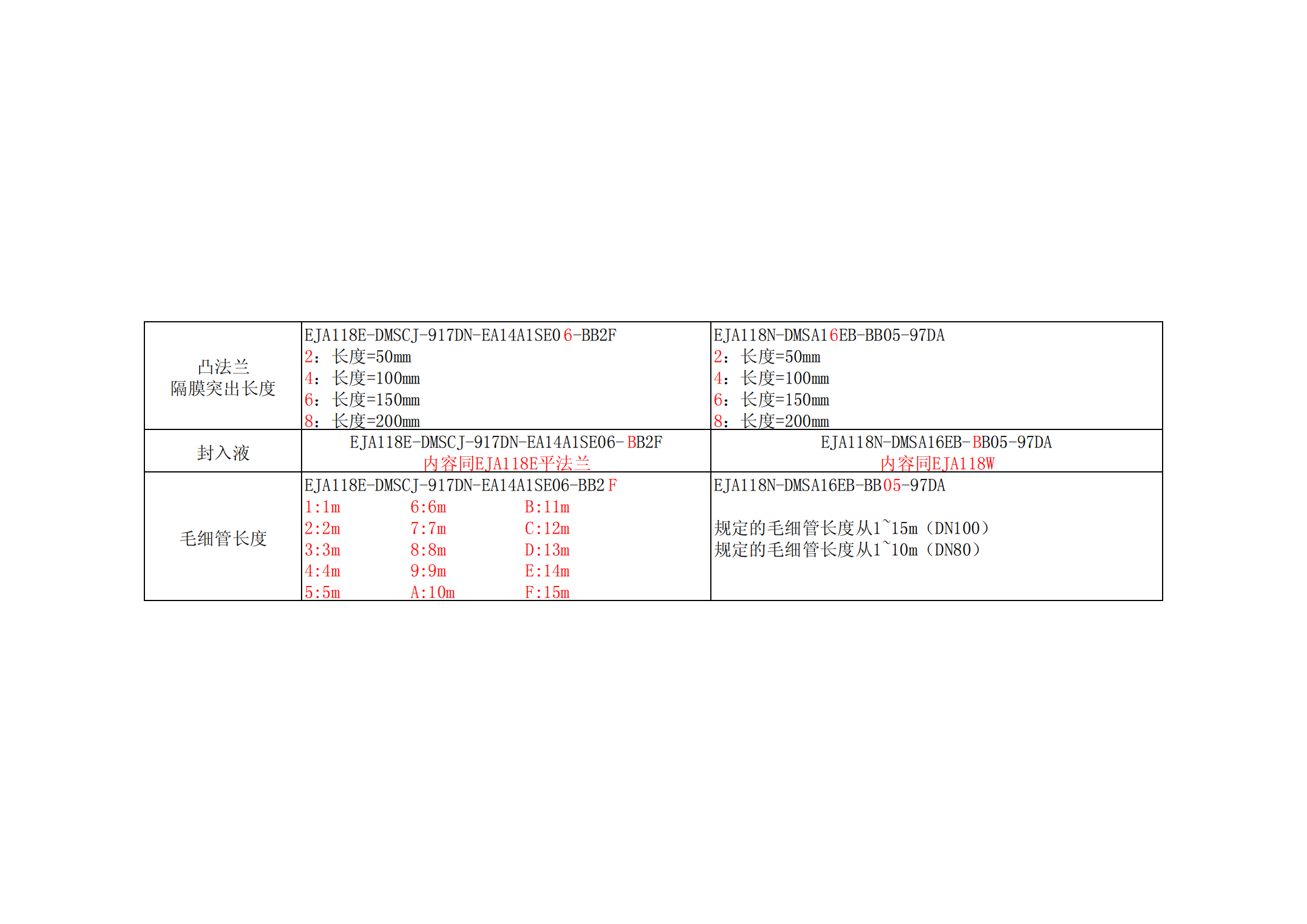 | 9、EJA118E和EJA438E的DN80凸法蘭的毛細管由原來的***長10m改為***長15m |