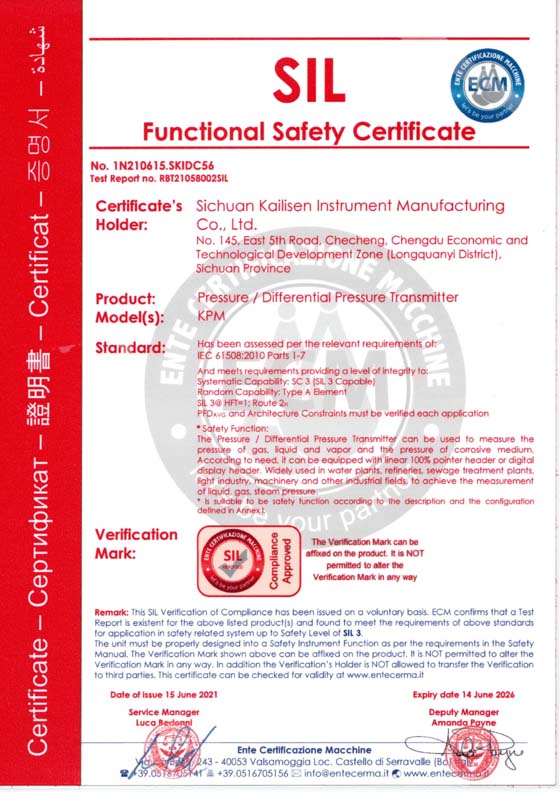 壓力/差壓變送器SIL3安全認證