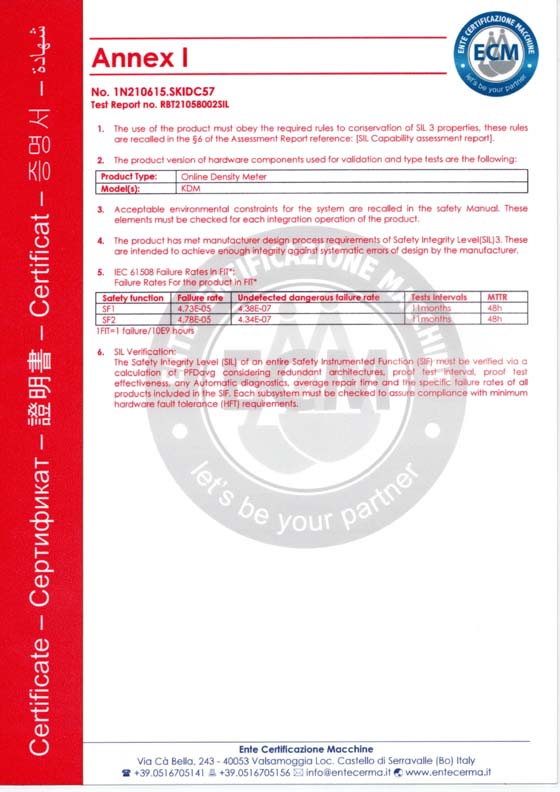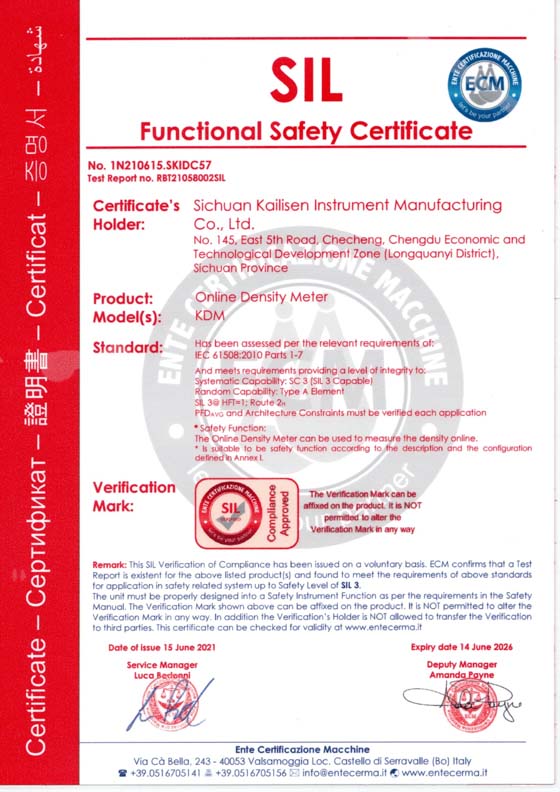 在線密度計SIL3安全認證